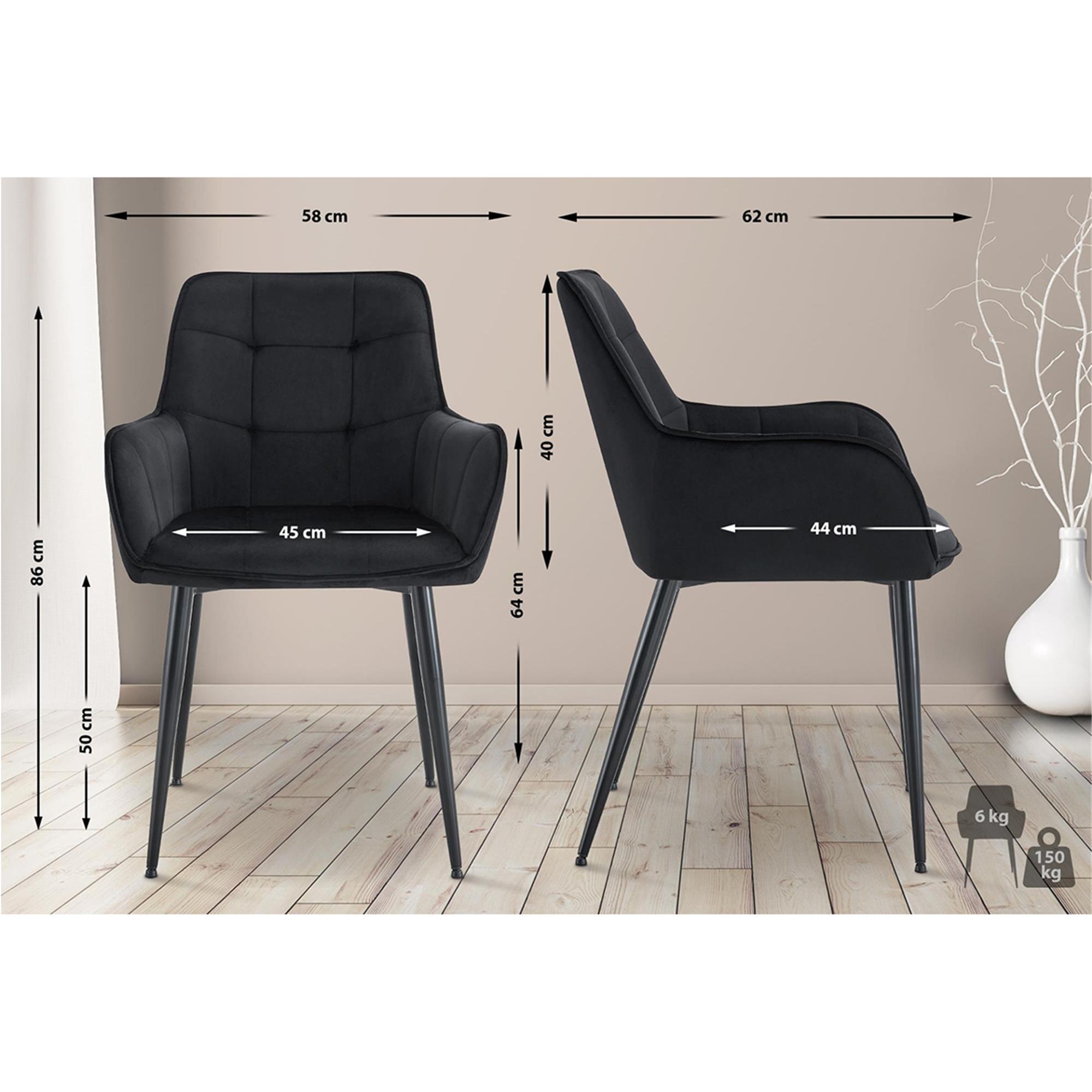 Set van 2 Vergaderstoelen RUFUS, Elegant Retro Design, Zwarte Metalen Poten, Zwart Fluweel