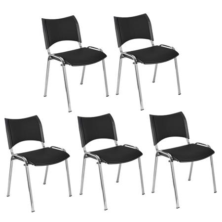 Set van 5 Vergaderstoelen ROMEL LEDER, Comfortabele Zitting, Stapelbaar, Verchroomde Poten, Zwart