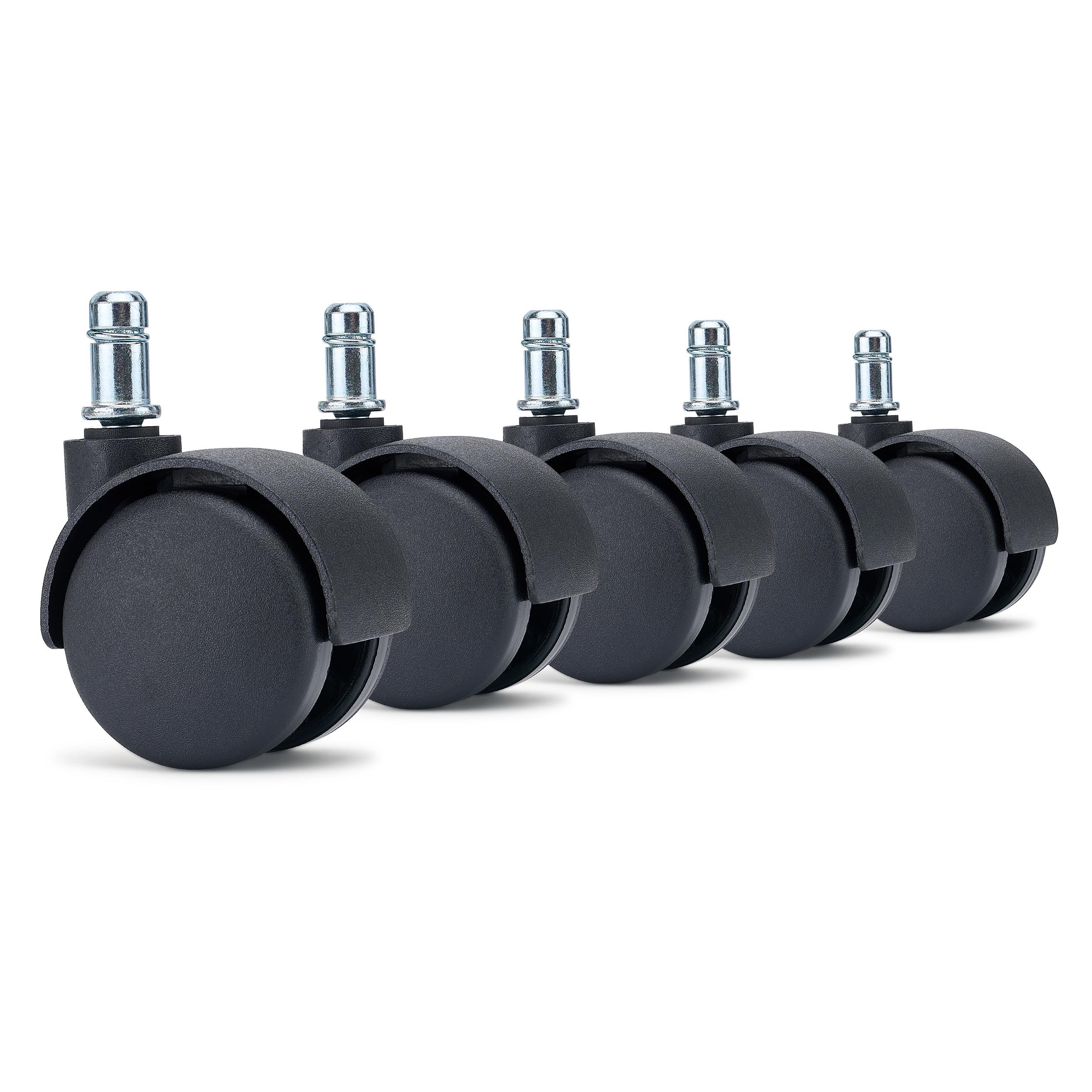 Set van 5 bureaustoelwielen GEAR. Deze stabiele en soepel lopende standaardwielen zijn perfect als vervanging voor elke bureaustoel of fauteuil op onze website die nieuwe wielen nodig heeft.