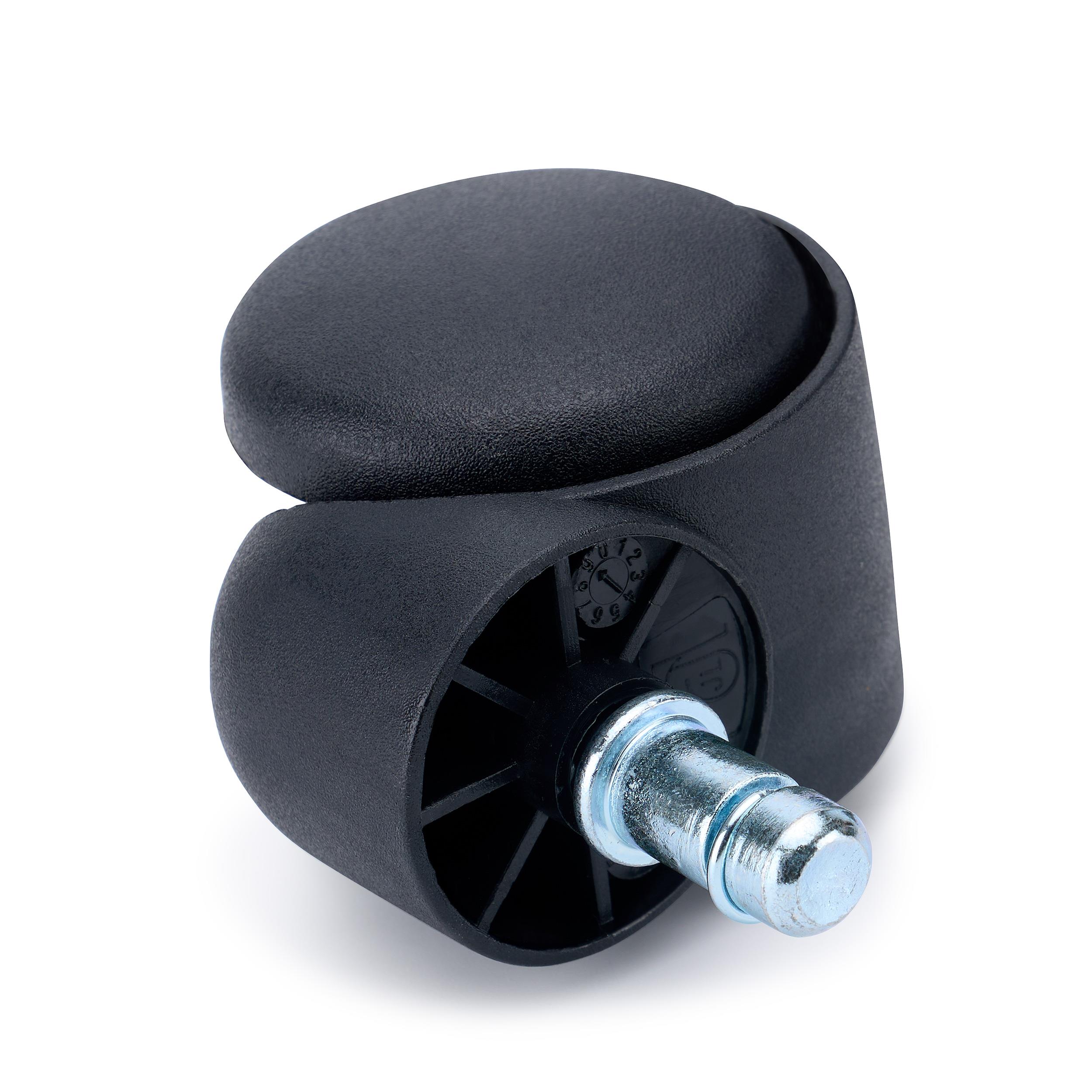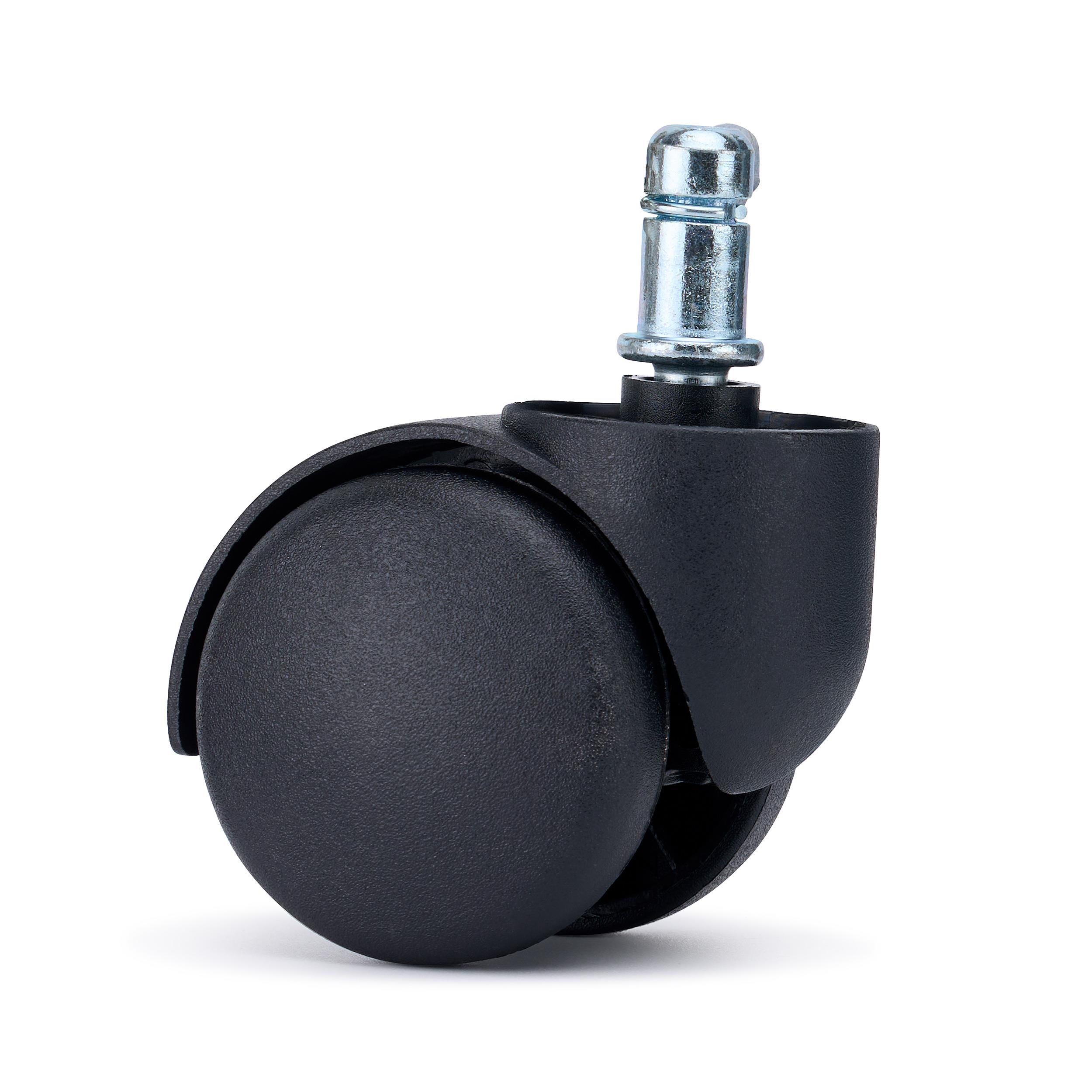 Deze wielen zijn geschikt voor alle vloertypen en rollen soepel op zachte vloeren. De stevige, gestandaardiseerde metalen pin van 11 mm zorgt voor een stabiele bevestiging en maakt snelle installatie op de meeste stoelen mogelijk.