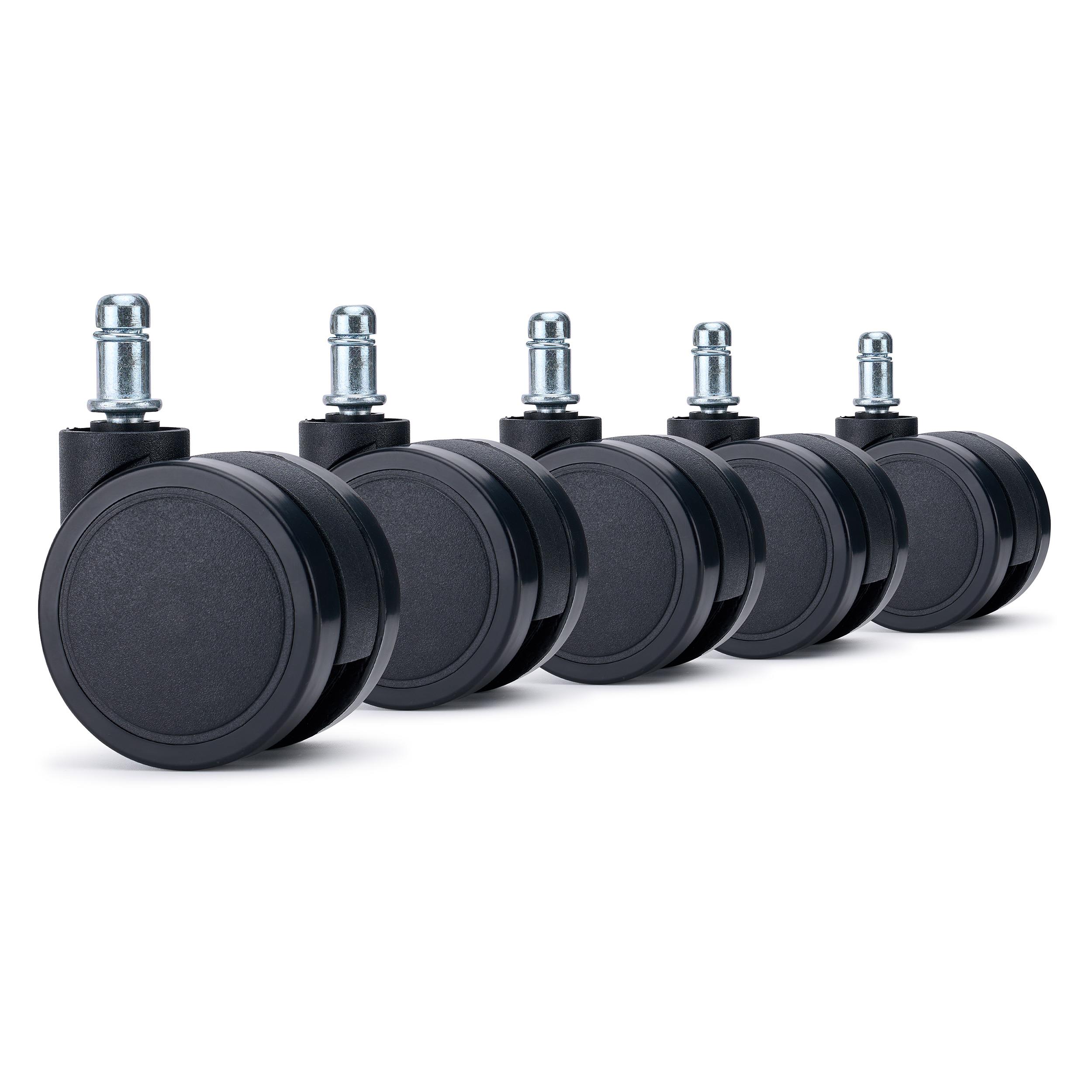 Set van 5 VOLT bureaustoelwielen. Essentieel voor comfort en efficiëntie tijdens het dagelijkse werk. Deze professionele wielen zijn ontworpen voor een soepele werking, stabiliteit en vloerbescherming, waardoor ze een onmisbare oplossing zijn in elke moderne werkomgeving.