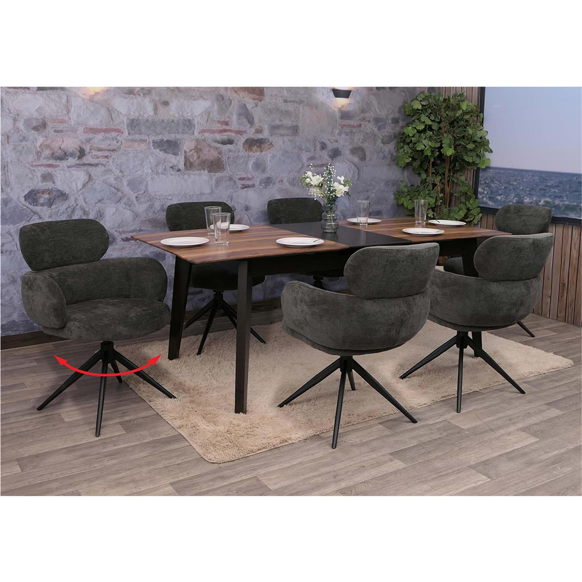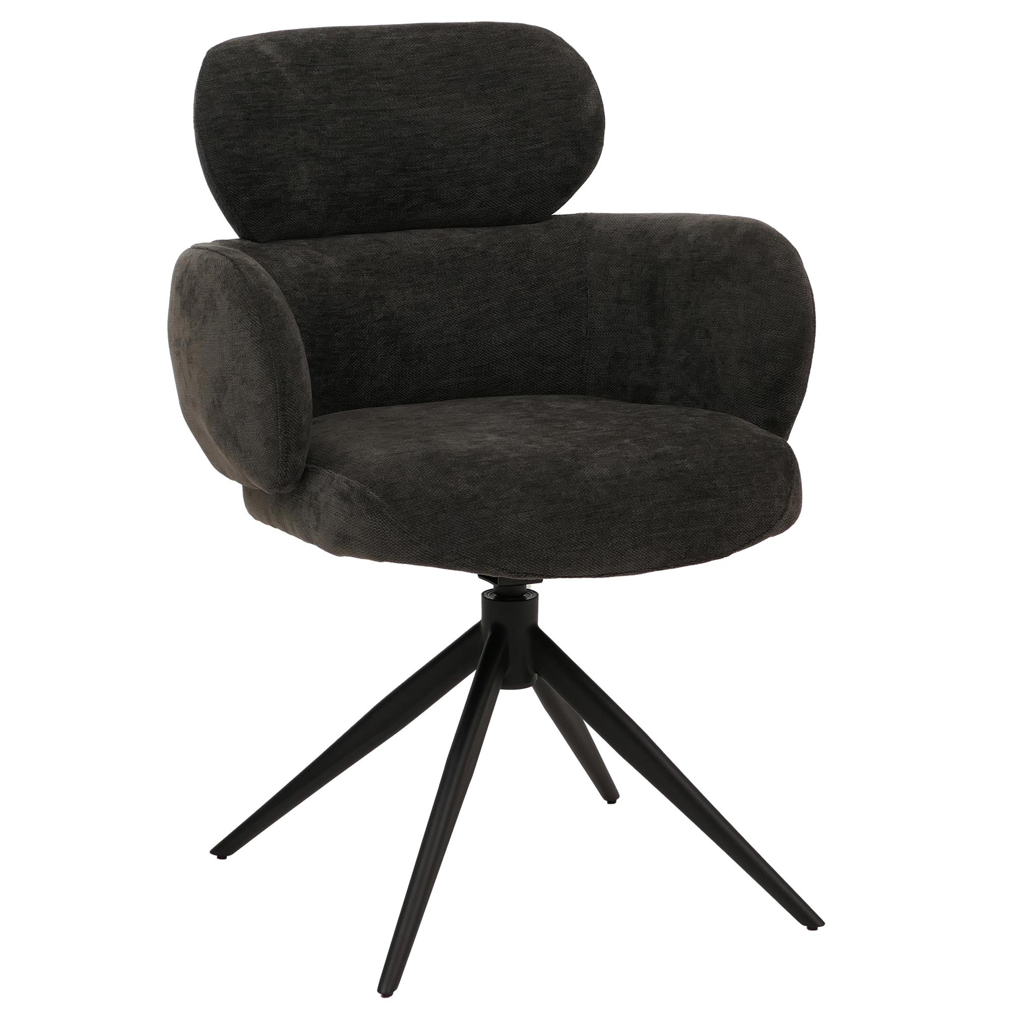 Vergaderstoel LINDEN, Retro Design, Draaibaar met Zwarte Poten, Antraciet Grijze Stof
