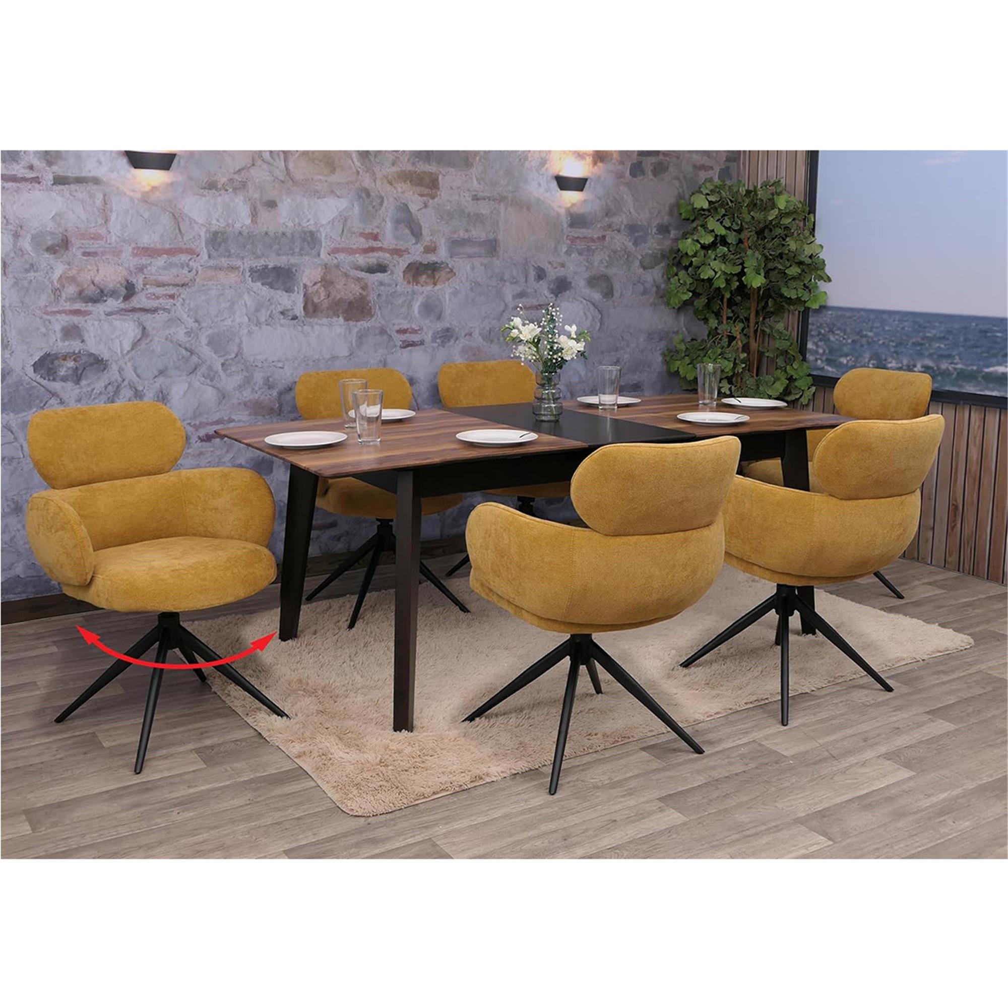 Vergaderstoel LINDEN, Retro Design, Draaibaar met Zwarte Poten, Donkergele Stof
