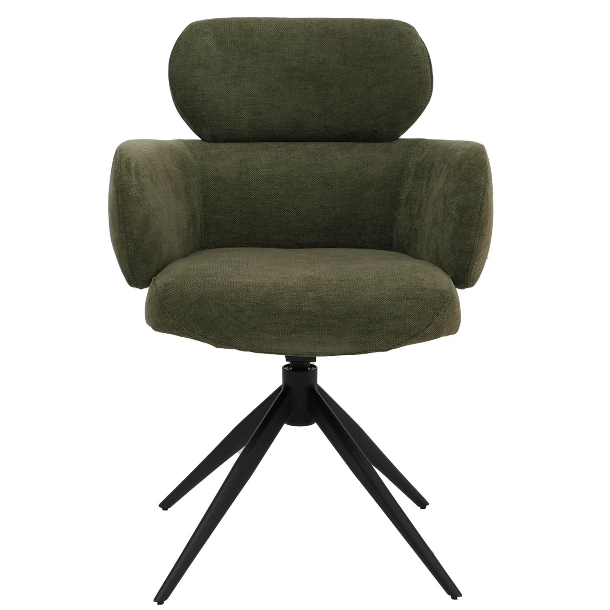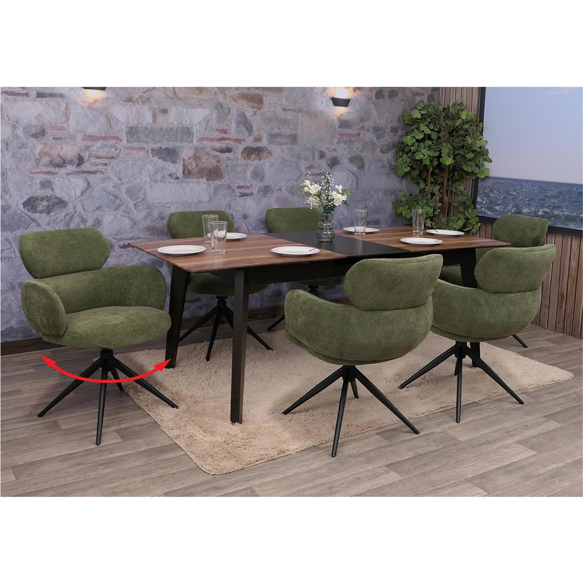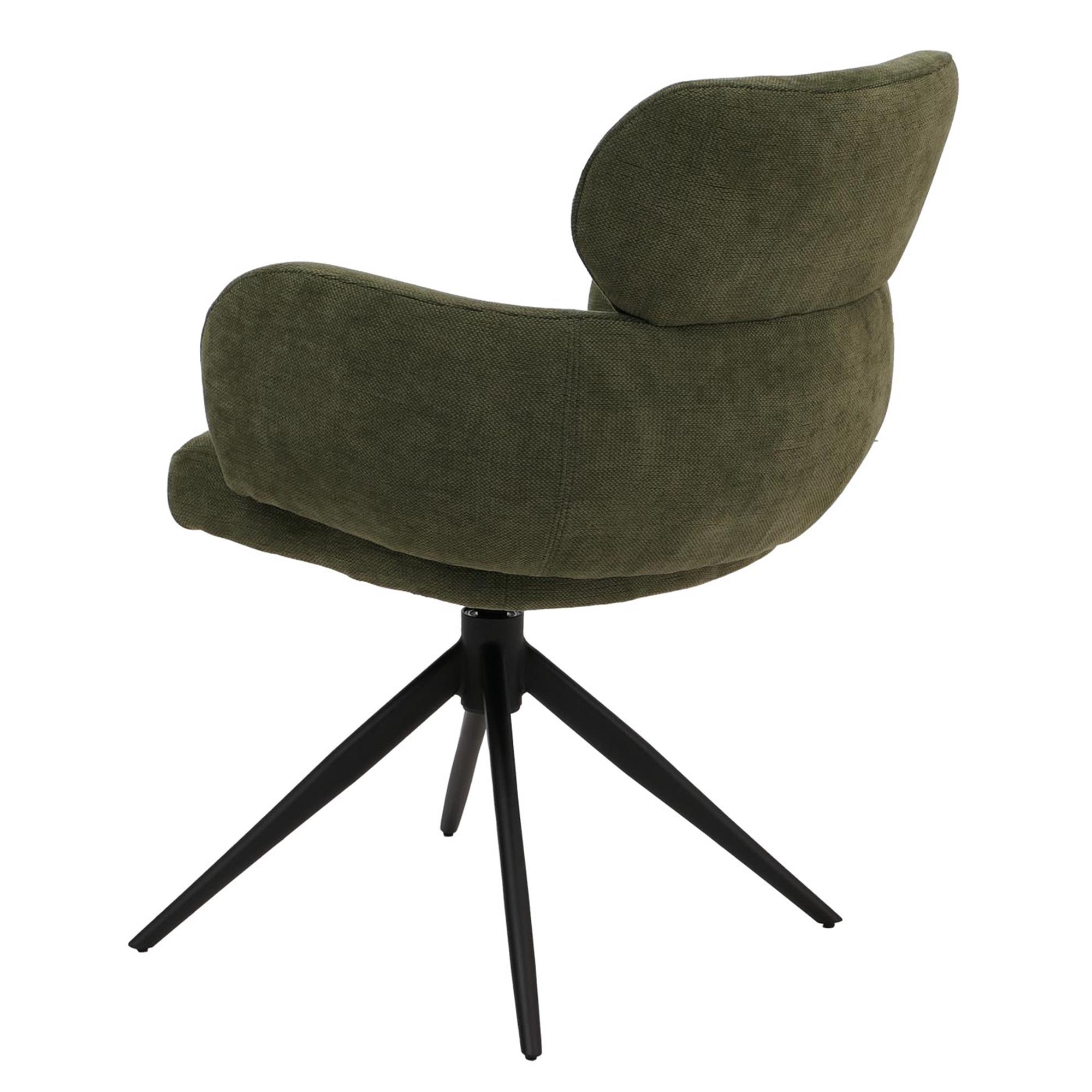 Vergaderstoel LINDEN, Retro Design, Draaibaar met Zwarte Poten, Groene Stof