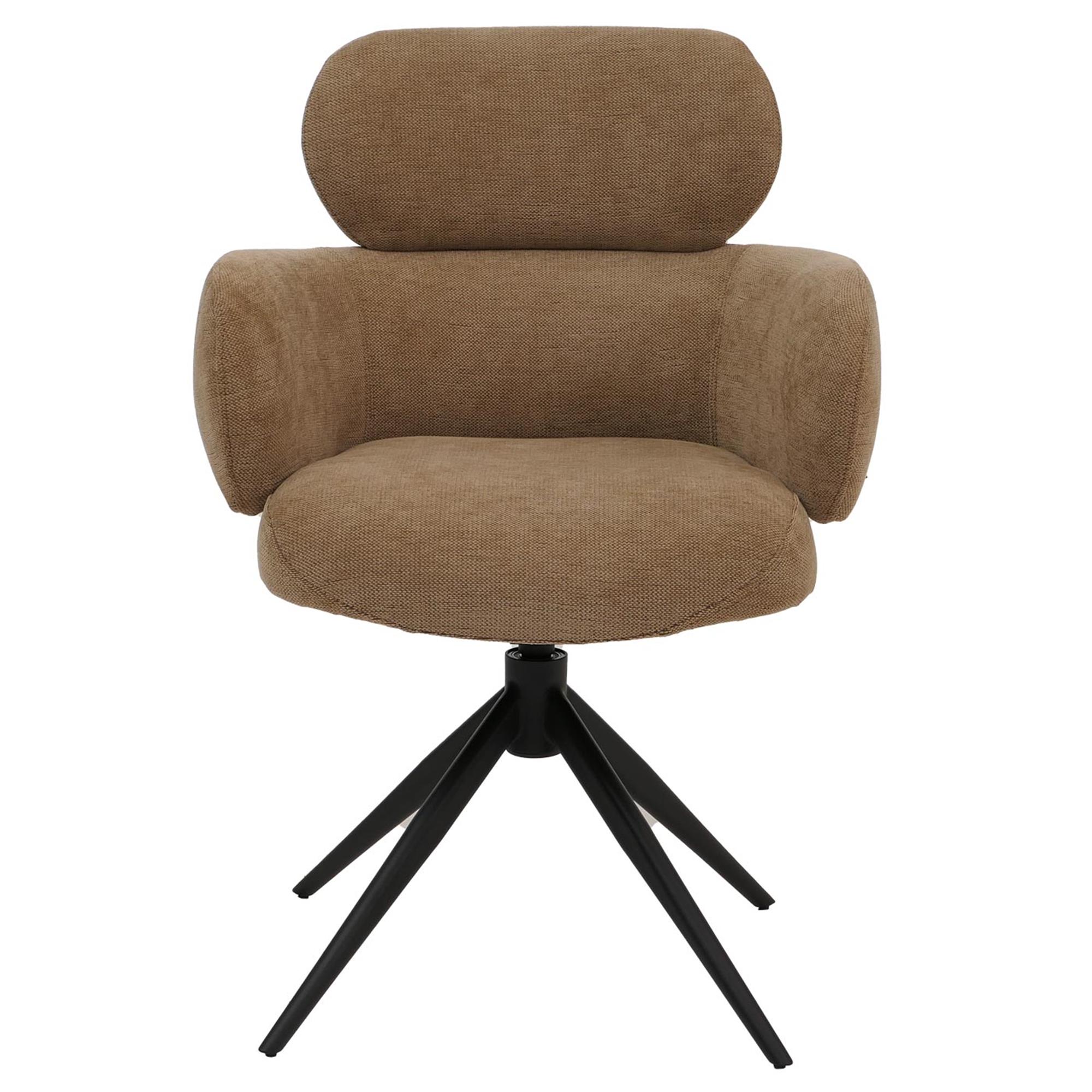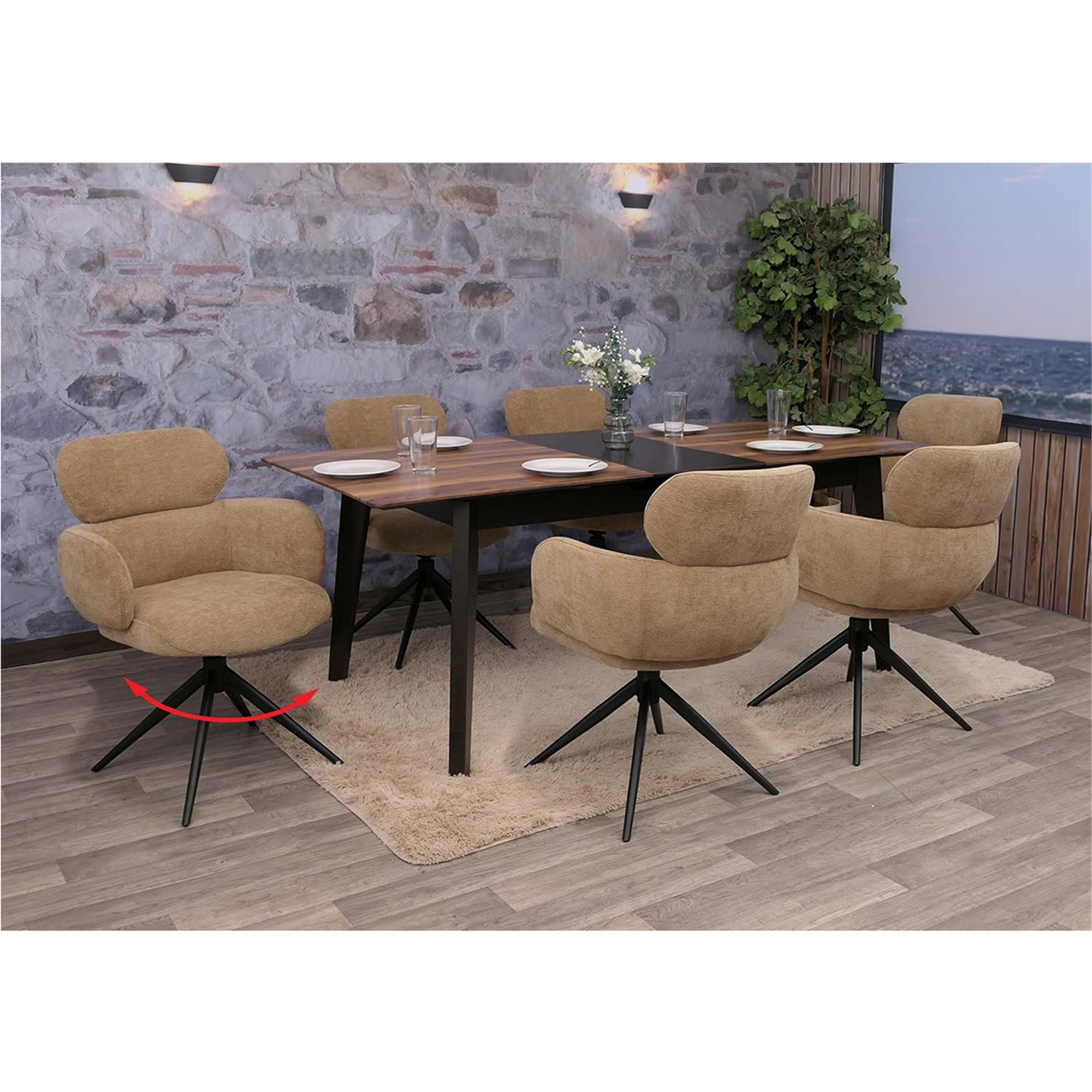 Vergaderstoel LINDEN, Retro Design, Draaibaar met Zwarte Poten, Lichtbruine Stof