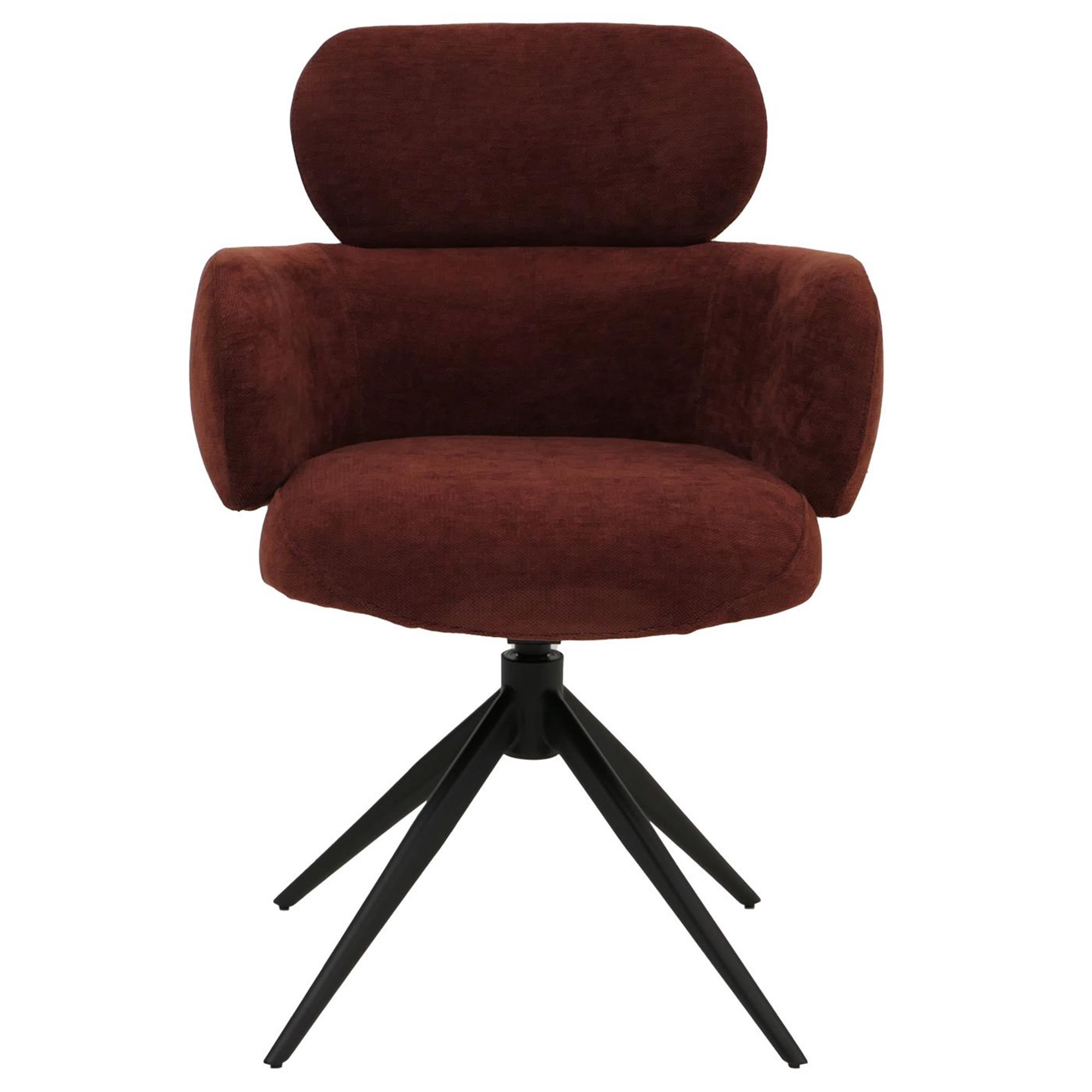 Vergaderstoel LINDEN, Retro Design, Draaibaar met Zwarte Poten, Roodbruine Stof