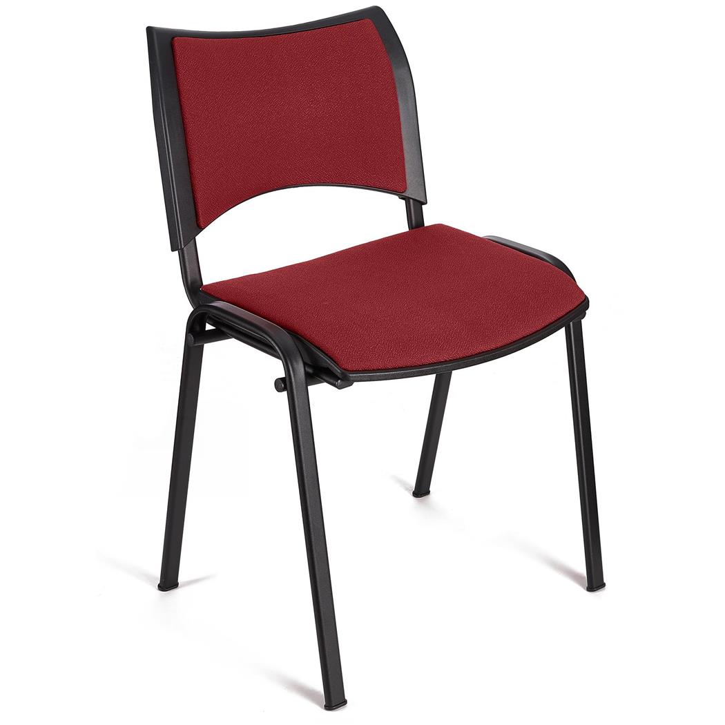 Vergaderstoel ROMEL, Comfortabele Zitting, Stapelbaar, Zwarte Poten, Bordeaux Stoffen Bekleding