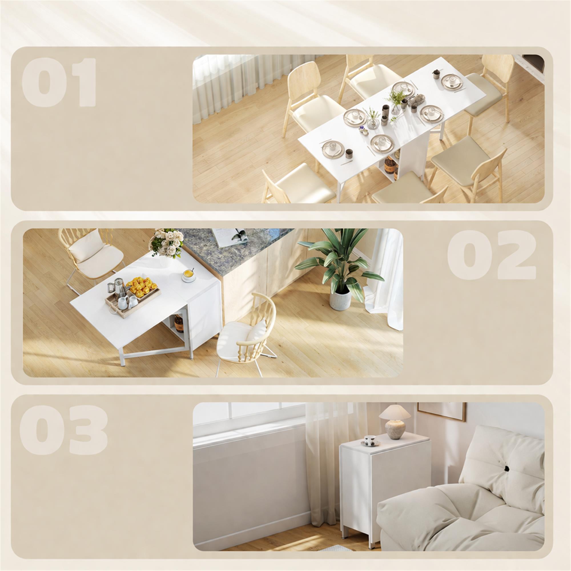Het gelakte metalen frame garandeert een onberispelijke stabiliteit en een lange levensduur: de strakke lijnen en het stevige frame zijn ontworpen om de ingeklapte tafelbladen veilig te ondersteunen en bieden betrouwbare steun zonder afbreuk te doen aan de esthetische lichtheid van een modern ontwerp.