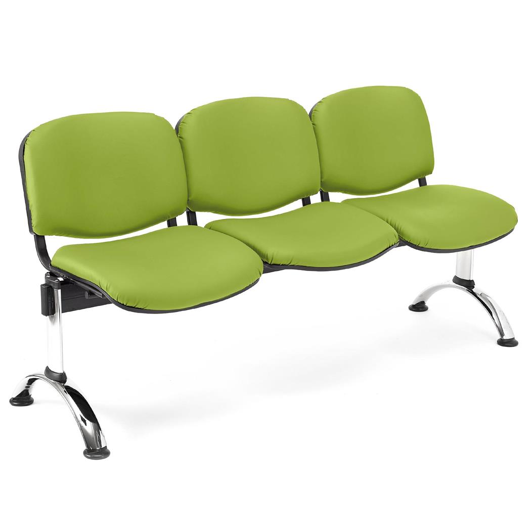 Wachtbank 3-zits MOBY LEDER, Metalen Structuur, Dikke Vulling, Groen